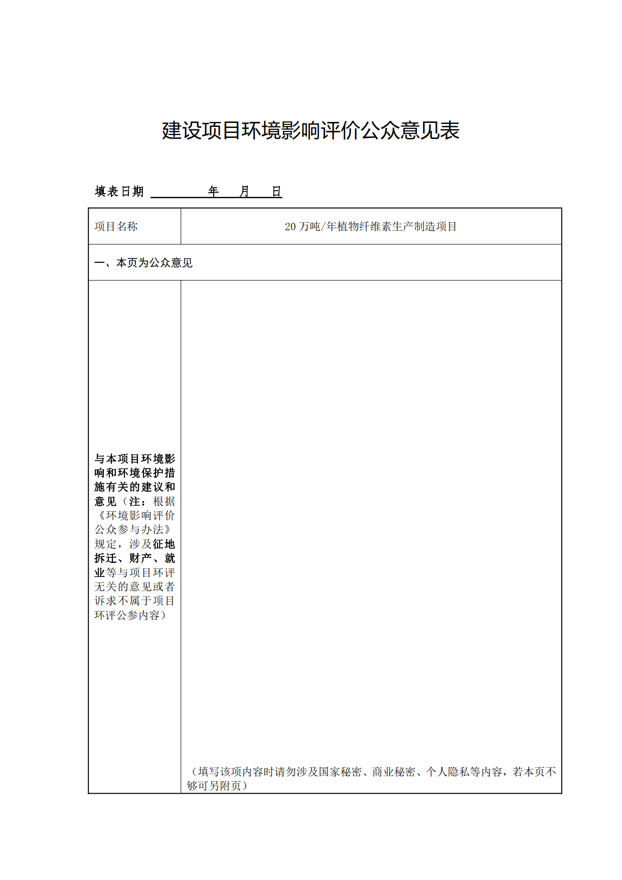 主頁項(xiàng)目公示萬木植物纖維素項(xiàng)目公眾參與調(diào)查表
